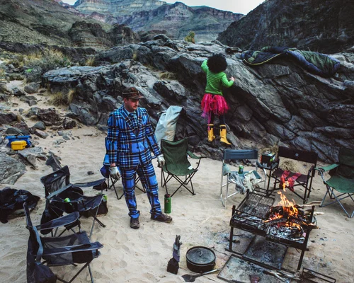 Ashleigh Bielenberg stokes the fire on an over-night backpacking trip to summit House Roof Hill. Bielenberg had transferred from another remote Western Australian livestock property to become Ned’s governess and aid him with his long distance learning.